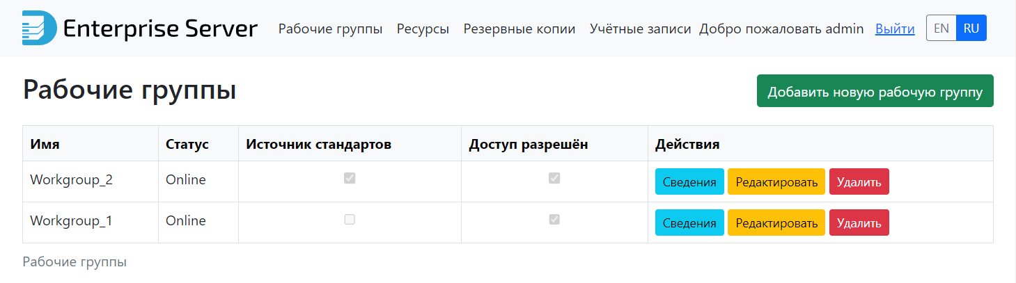 Основной функционал Enteprise Server