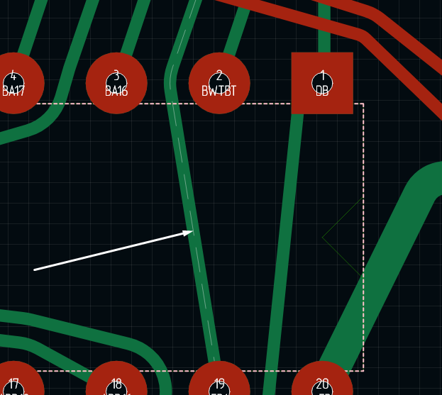 В результате выбранная цепь или выбранный трек на плате отображается с пунктирной осевой линией (Рис. 3).