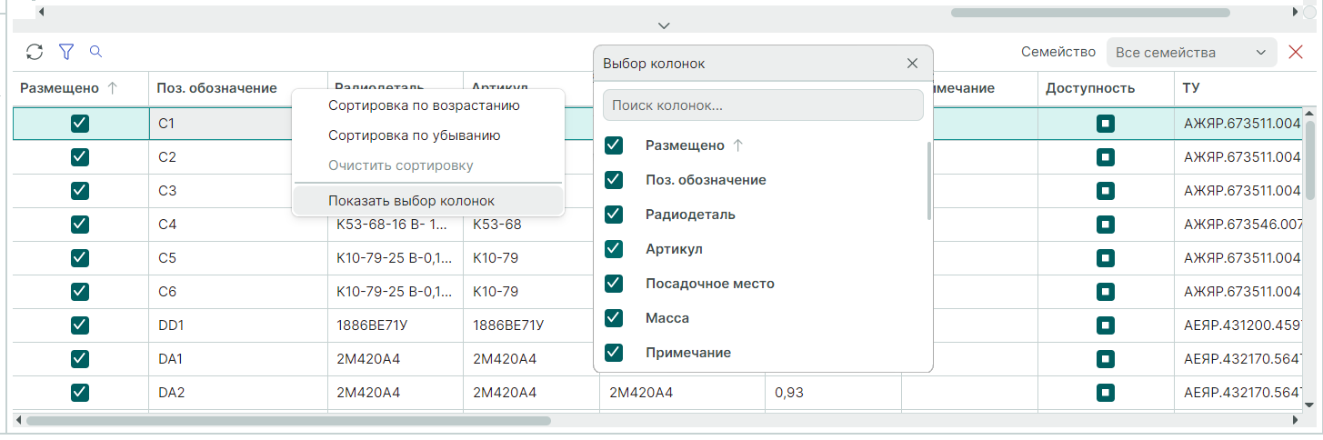В правой части расположено выпадающее меню «Семейство», позволяющее произвести выбор семейства для отображения (Рис. 3).