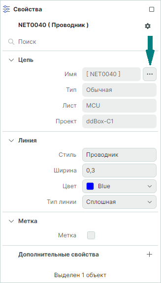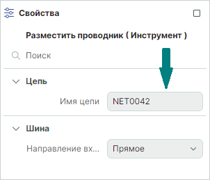Пользователь может задать имя цепи в процессе её размещения. Для этого, находясь в режиме размещения цепи, перейдите в панель "Свойства" и измените значение в поле "Имя цепи" (Рис. 1).
