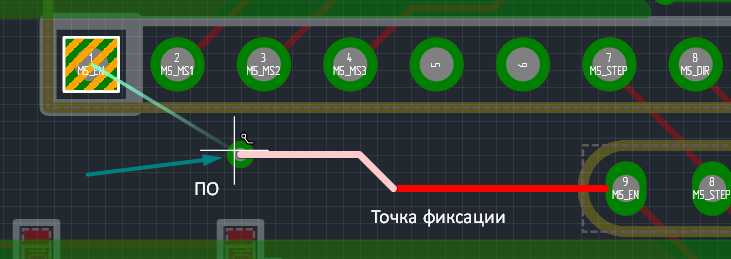 Рис. 5 - Результат прокладки трека через ПО при переключении слоя с точкой фиксации |