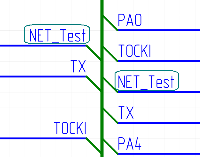 В этом случае цепь "RX" на схеме будет переименована согласно тому определению цепи, которое было поставлено ей в соответствие, в данном случае это "NET_Test" (Рис. 26).
