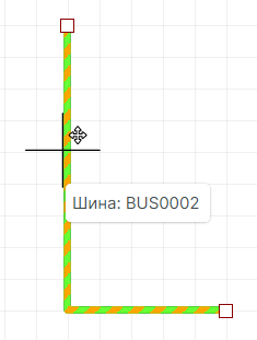 Если перемещение в данную точку будет невозможно из-за наложения шины на другие объекты схемы, шина будет подсвечена красным крестом, обозначающим некорректность такого перемещения.