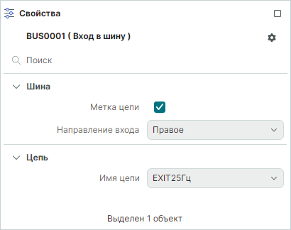 В поле «Направление входа» можно задать из выпадающего списка направление входа подключения цепи к шине: прямое, левое или правое.