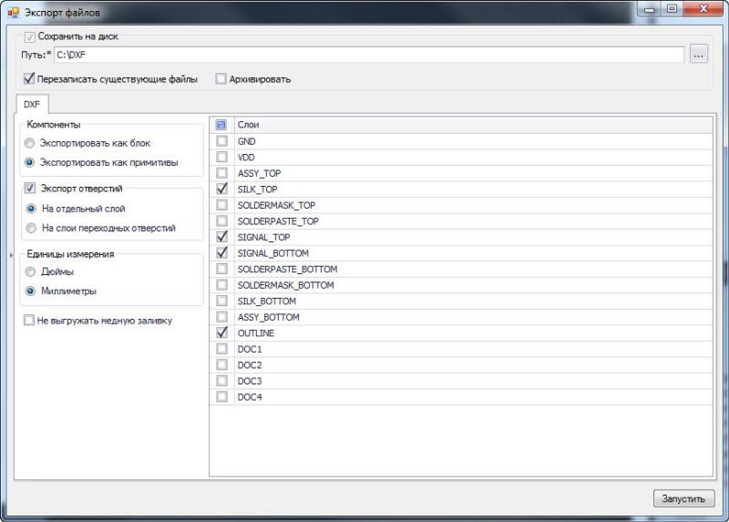 Как выгрузить проект платы в формат DXF?